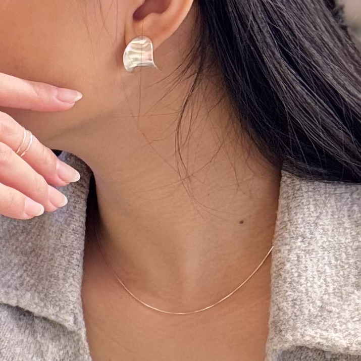 This delicate, minimalist sterling silver chain is ultra fine and sleek, resting just above the collarbone, giving it a barely there, elegant look. The subtle shine of the chain enhances its refined simplicity, making it perfect for layering or wearing solo for a clean, understated style.