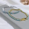 The Margot Tennis bracelet is truly a creation sensation! Turquoise colored and high quality zirconia are stranded together for a dazzling look. Available in two finishes; sterling and sterling with gold plating. Wear it, pair it, layer it.