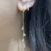 There’s no such thing as too much bling! Francesca drop earrings are dripping in dazzle. These stunners have a dangling gold chain with swarovski crystals attached to a huggie.