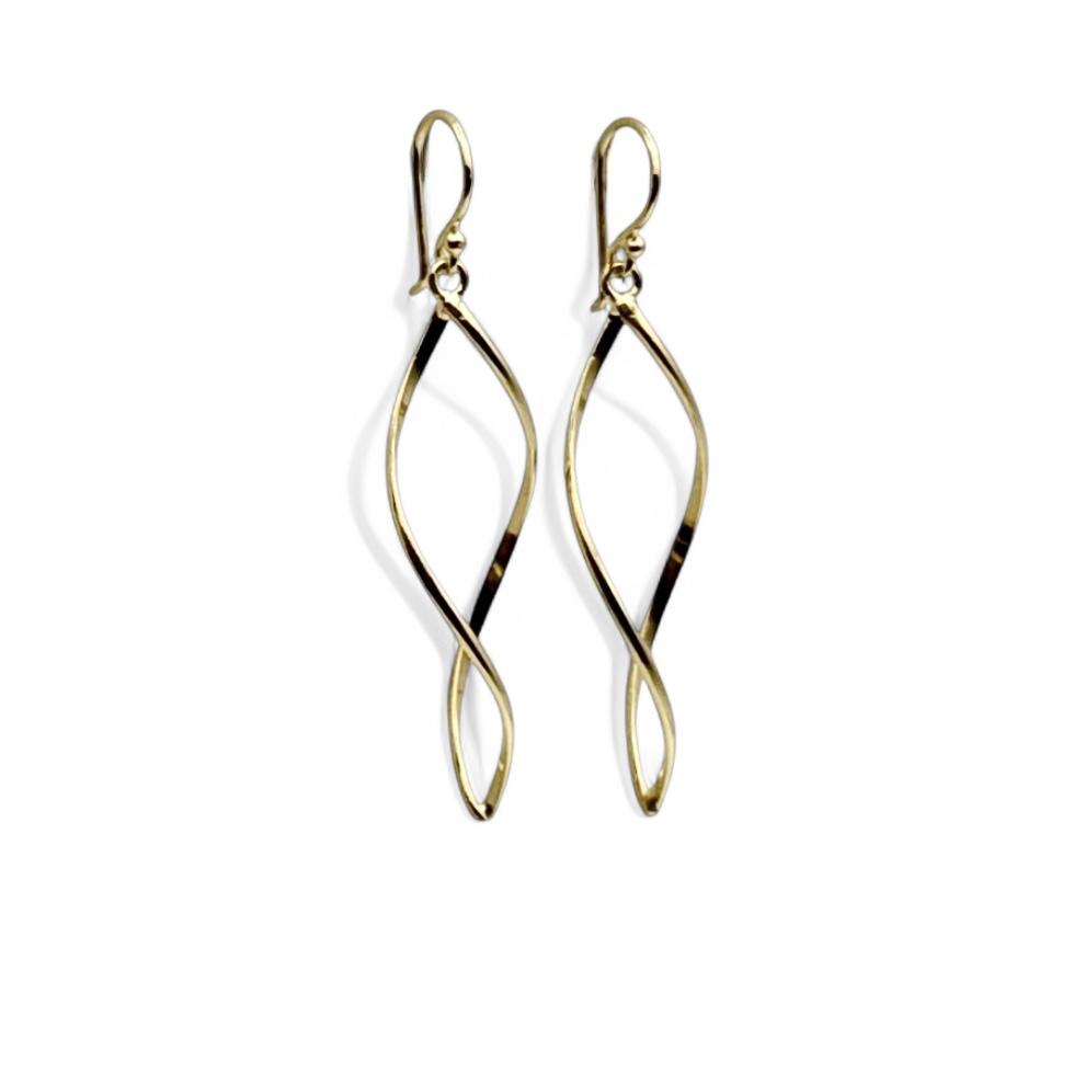 Timeless and elegant, these infinity dangly earrings symbolize endless beauty and connection. Crafted from sterling silver and plated in 14K gold, the flowing infinity design creates a graceful, elongated silhouette that moves effortlessly with you.