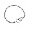 - 2.5 mm sterling silver beaded bracelet with two hearts interlocked