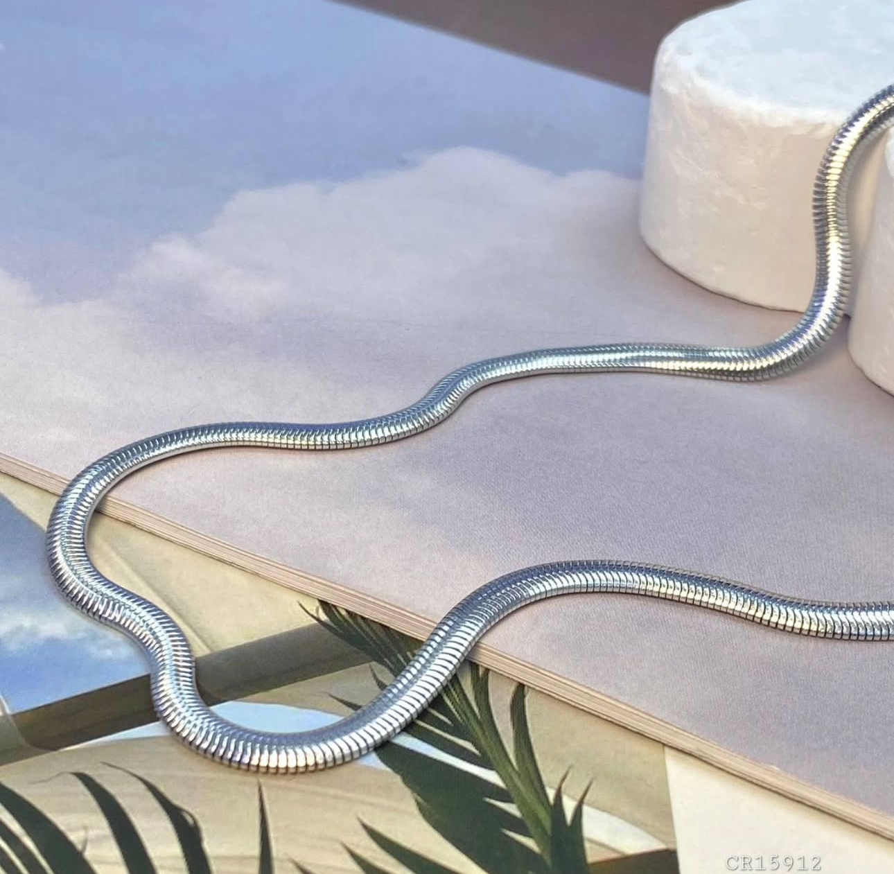 This sterling silver serpent choker drapes around your neckline with a liquid like shine, giving you that effortlessly bold, modern look. With a built in 2 inch extension, it sits exactly where you want it. Perfect for layering or wearing as a clean, statement piece on its own.