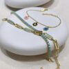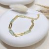 Large and small chain links with an artisanal look and feel, the Margot Paper Clip bracelet is handcrafted in sterling silver with 14K gold plating. Lustrous blue enamel inlay adds a unique finish. The chunky design is perfect to wear on it’s own, or layer it for a dramatic statement.