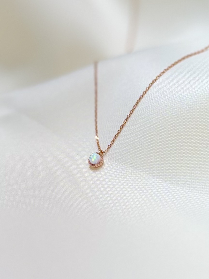 Delicate and dreamy, this sterling silver necklace with 14K rose gold plating features a luminous opal pendant set in a refined, minimalist setting. The soft play of color in the opal shimmers beautifully against the warm rose gold tones, creating a look that’s both timeless and feminine. Perfect for adding a subtle touch of elegance to any occasion.