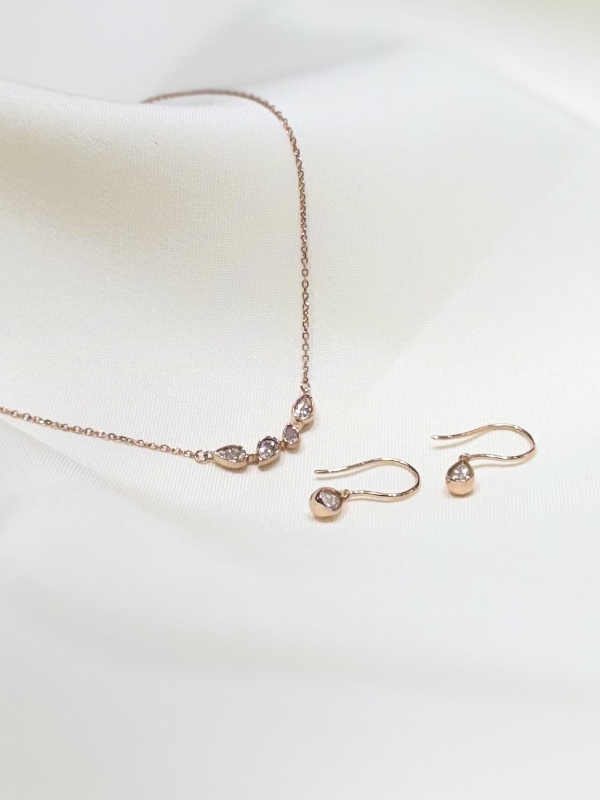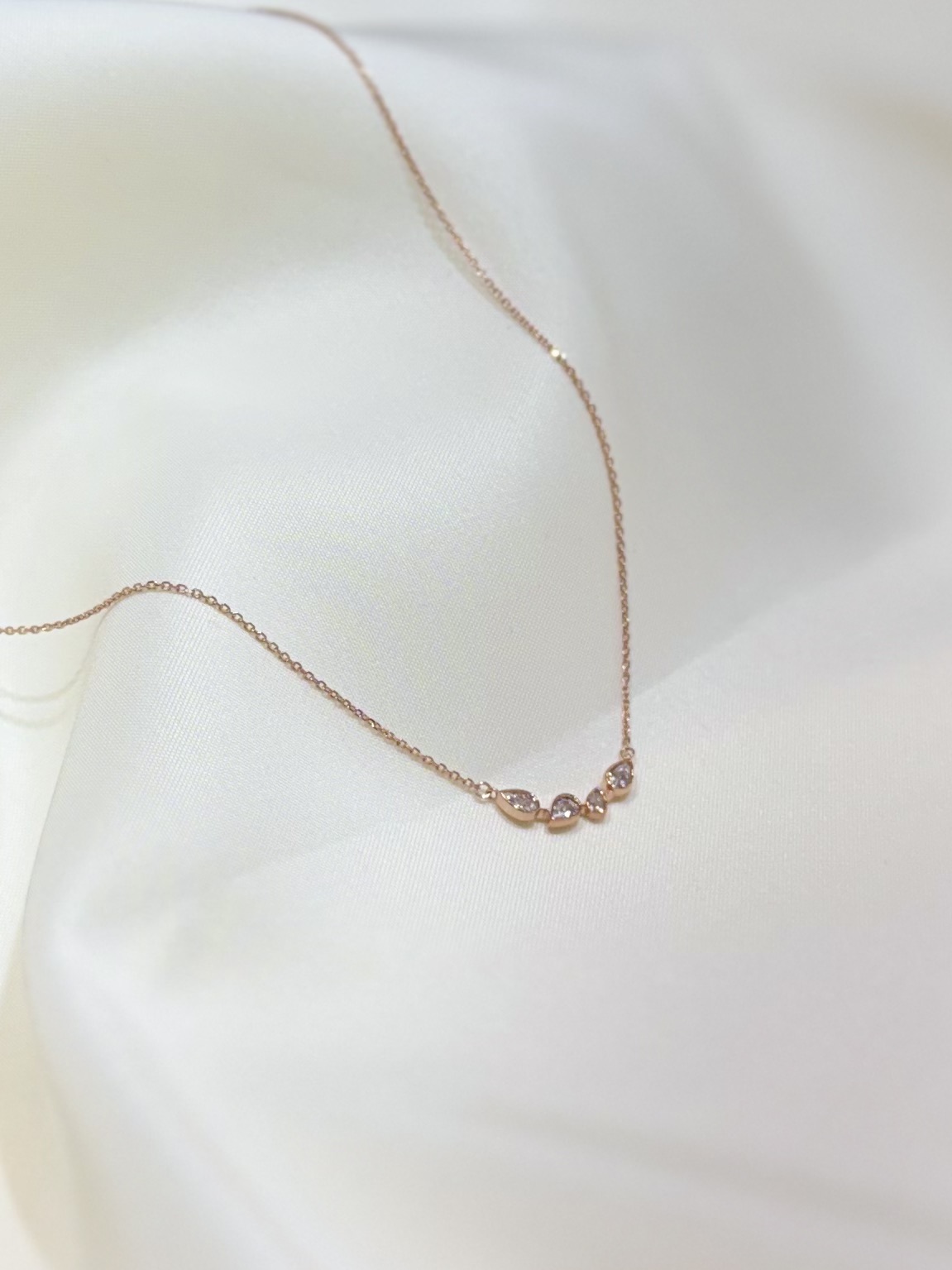 Catch the light in style, this 14K rose gold plated sterling silver necklace features raindrop shaped stones clustered along a delicate chain for that effortless glow up. Sparkly, chic, and made to shine with every move.