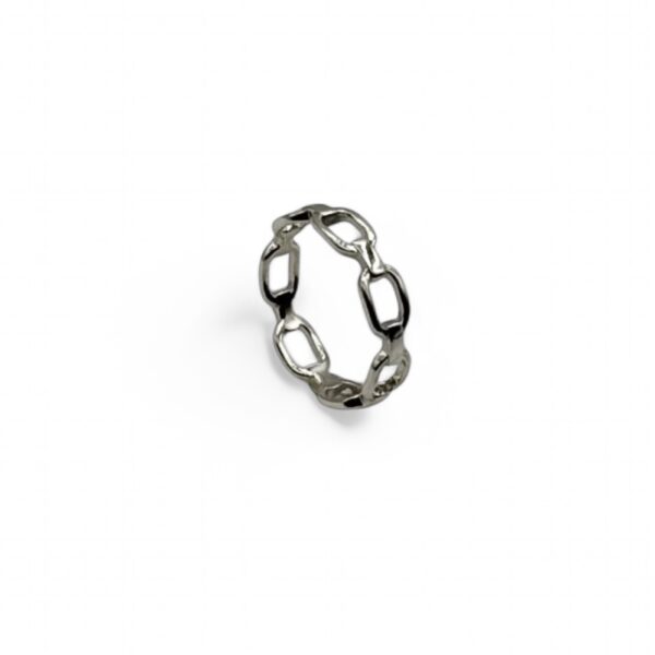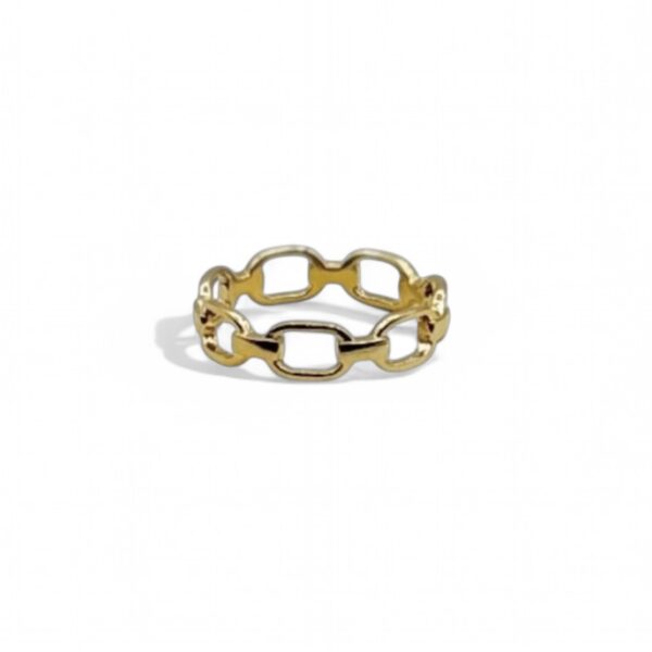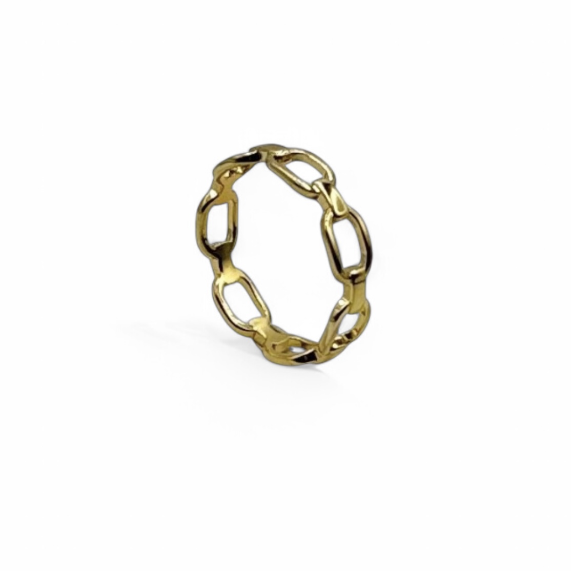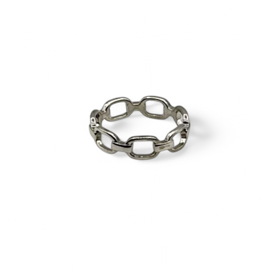 Bold and sophisticated, this sterling silver ring is plated with 14K gold and features a striking chain link design that combines modern elegance with a touch of edginess. The interwoven chain links create a seamless, continuous band that wraps around the finger with a luxurious feel, making it a standout piece for any jewellery collection.