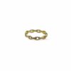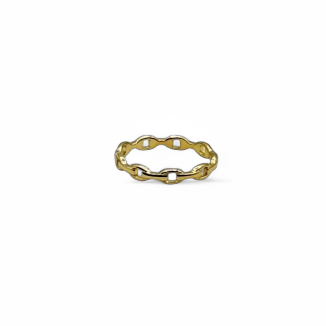Delicate and modern, this thin chain link ring is crafted from sterling silver and plated with 14K gold to create a refined and versatile piece. The sleek, slender chain links are carefully interconnected to form a continuous, minimalist band that adds a subtle yet sophisticated touch to any outfit.