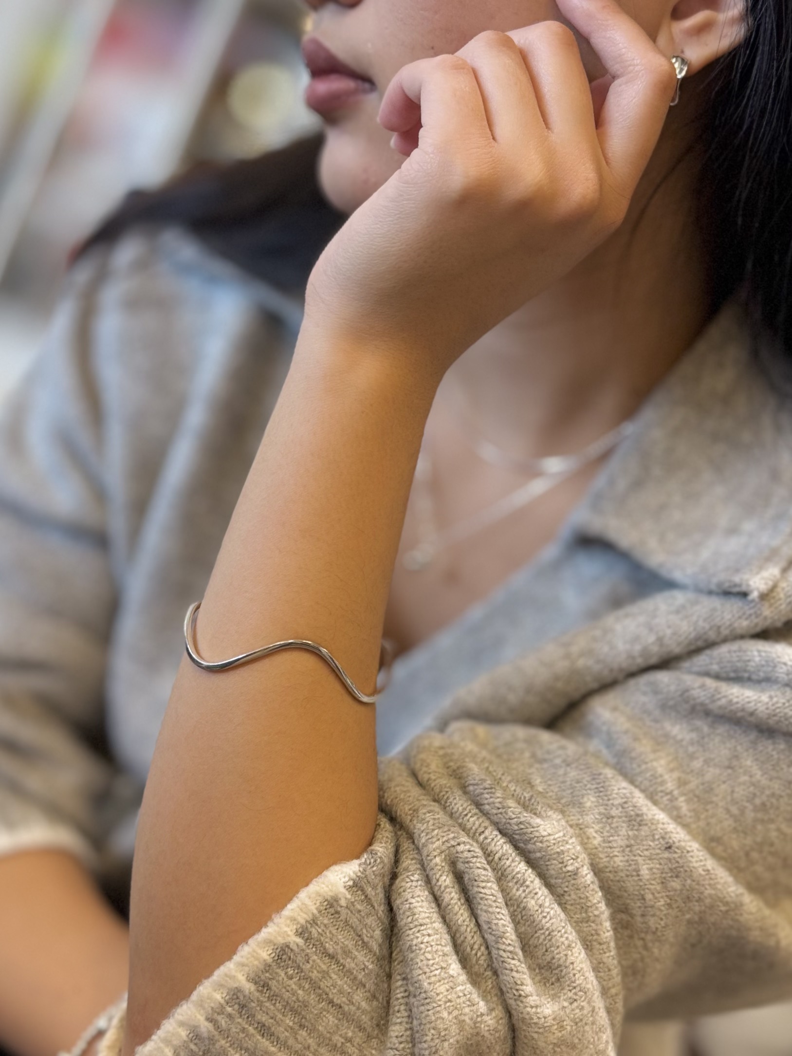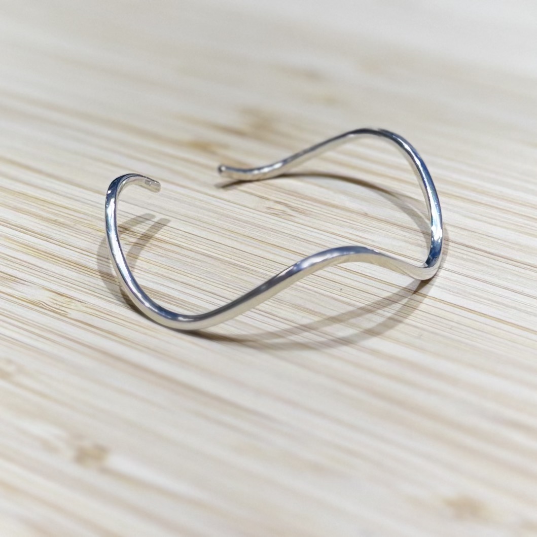 Effortless elegance meets modern minimalism in our handcrafted Sterling Silver Wave Cuff. Inspired by the natural rhythm of ocean waves, this open cuff features smooth, flowing curves that wrap gracefully around the wrist. Made from solid sterling silver and finished with a high polish shine, it reflects light beautifully and adds a sculptural touch to any outfit.