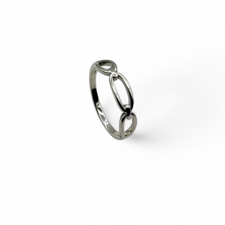 Modern and stylish, this sterling silver link ring features an interconnected chain inspired design that symbolizes strength and unity. Crafted from high quality sterling silver, each link is carefully shaped for a smooth, comfortable fit. With its polished finish and contemporary aesthetic, this ring offers a bold yet timeless look. Perfect for everyday wear, it adds a touch of edgy sophistication, whether worn alone or stacked with other rings.