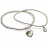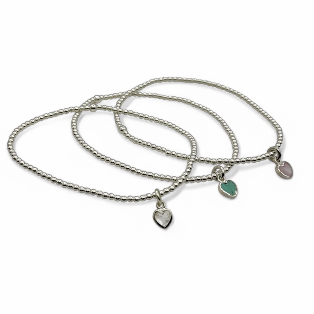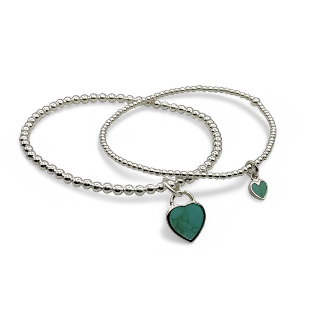 Add a touch of elegance to your jewellery collection with this sterling silver beaded bracelet, featuring a delicate hanging heart charm available in mother of pearl or turquoise. The smooth silver beads create a timeless look, while the heart charm adds a meaningful touch choose the iridescent shimmer of mother of pearl for a classic, luminous appeal or the vibrant blue of turquoise for a bold, uplifting statement. Perfect for stacking or wearing alone, this bracelet is a beautiful symbol of love and style.