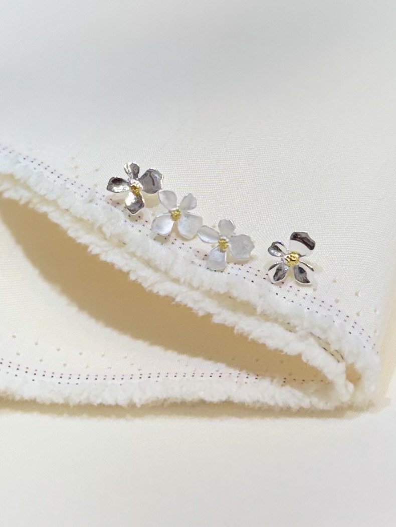 Delicately crafted in sterling silver, these four petaled flower stud earrings embody effortless elegance and timeless charm. Each petal is shaped with precision to capture the soft beauty of a blooming flower, making them the perfect everyday accessory or a subtle statement for special occasions. Lightweight, polished, and radiant. A graceful touch of nature inspired design for your jewellery collection.
