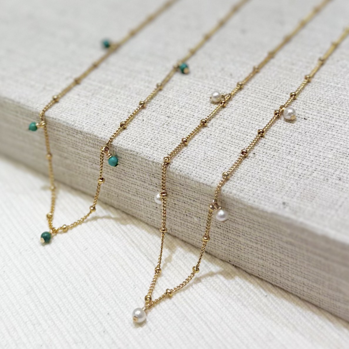 Timeless elegance meets effortless versatility in this handmade 14K gold filled necklace, designed to complement any style. Featuring a delicate gold filled chain, this piece is available with your choice of a vibrant turquoise gemstone or a classic freshwater pearl, allowing you to personalize your look.