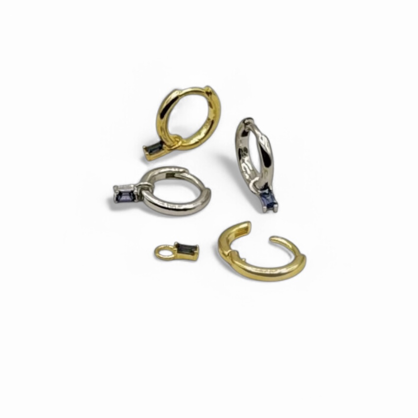 Perfect for day to night styling, these earrings let you customize your look with ease. Wear the huggies alone for a sleek, modern touch or add the tanzanite charms for a pop of color and sophistication.