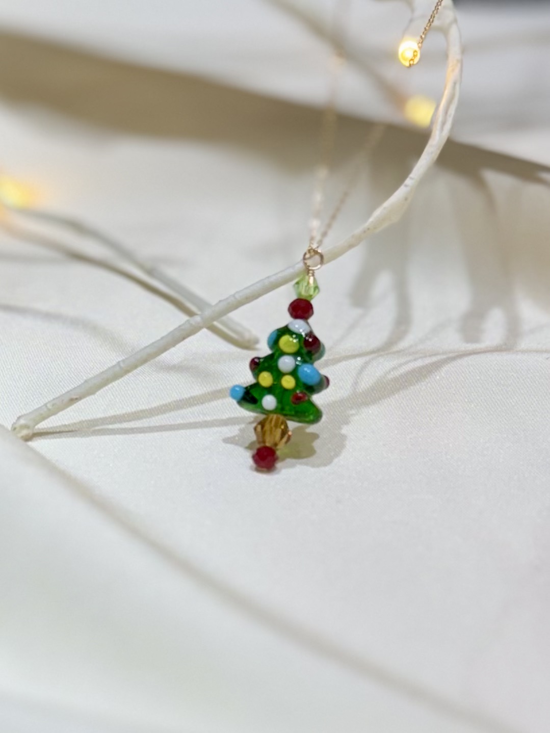 This Christmas Tree Necklace is giving festive, but make it dainty. Made with a 14K gold filled chain and a handcrafted glass tree charm that catches the light like twinkling ornaments, it’s the perfect little reminder that holiday magic is in the details.