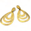 Earrings make a statement without saying a word! The Veronica earrings are that statement, speaking loud and clear with their gorgeous three layred gold teardrop shape loops. Hand sculpted.